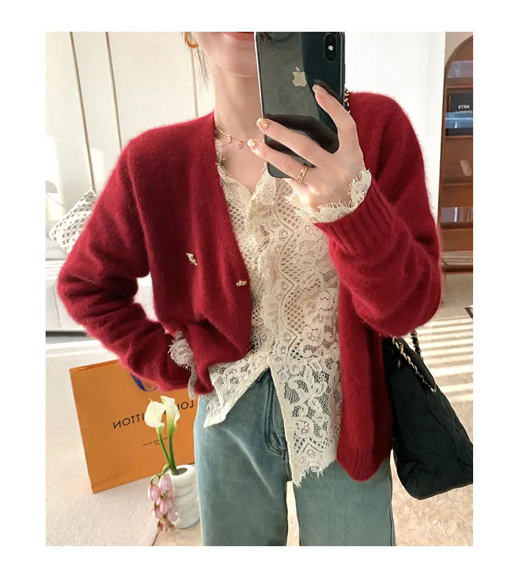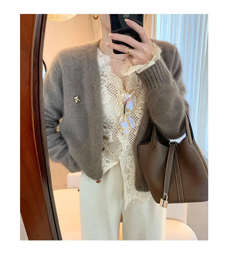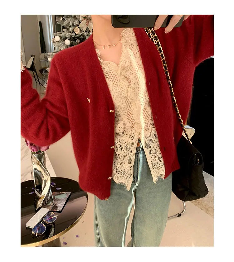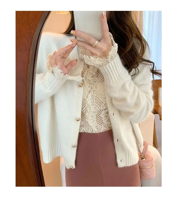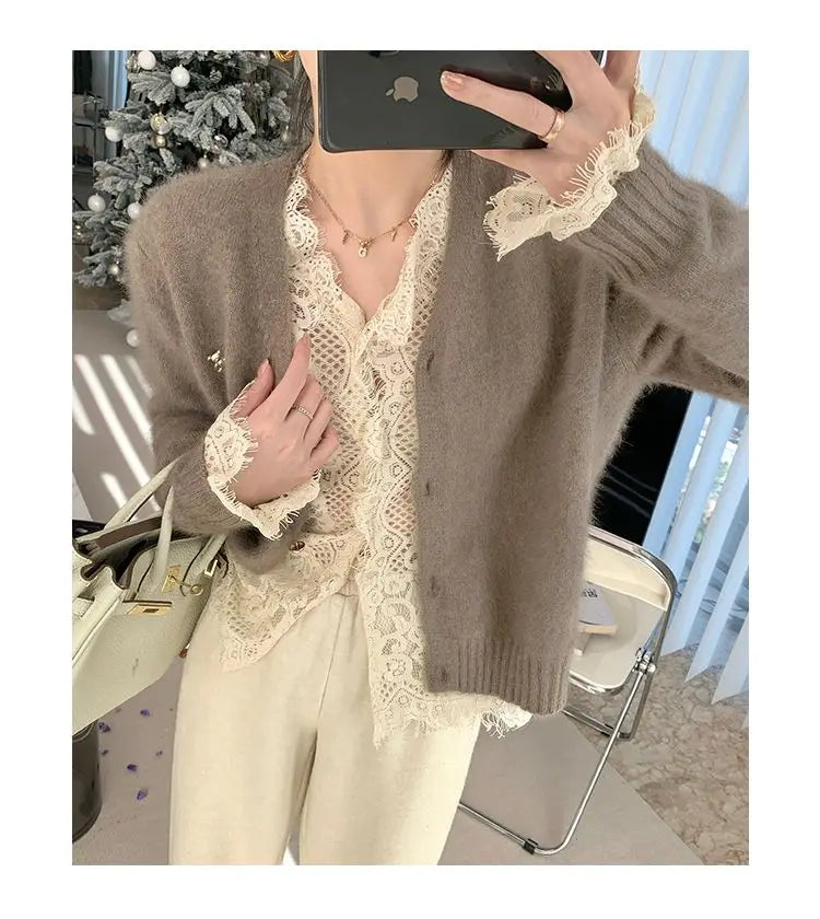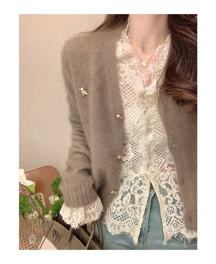 Women's Clothing 2024 Spring Autumn Sexy Hollow Out Lace Chic Vintage T-shirts Female Casual Solid V Neck Slim Long Sleeve Tops