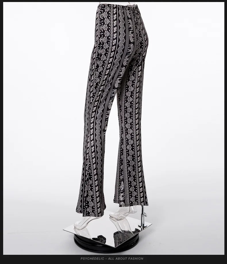 Women's Clothing Pants 2025 New Women's Pants Bohemian Micro-flared Pants Leggings Fashion Printing Ethnic Tribal Style