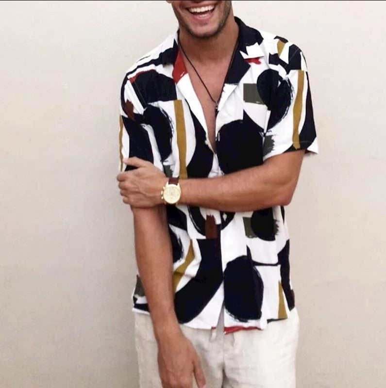 New Men's Slim Business Formal Wear Men's Interlining Printed Thin Casual Shirt