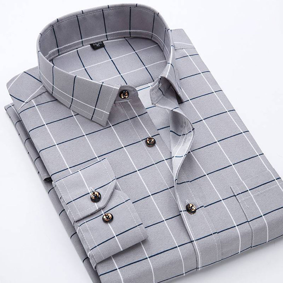Men's Spring Long Sleeve Solid Color No Pocket Business Casual Stretch Shirt
