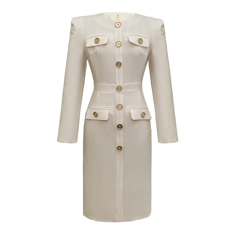 Fall Women's Clothing Goddess Temperament Commuting Elegant Round Neck Single-breasted Slim Sheath Dress
