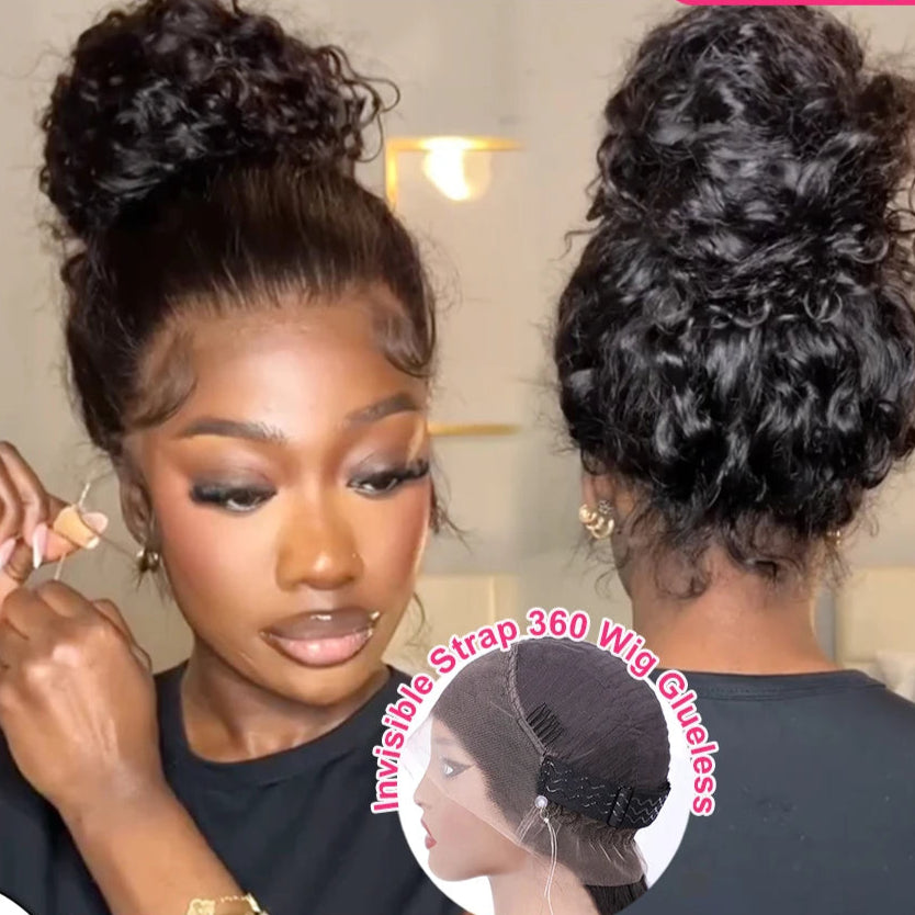 250 Density Invisible Strap 360 HD Full Lace Glueless Wig Deep Wave Frontal Wig Human Hair 30 Inch Water Wave Lace Front Wig - invisi strap 360 Wig / 34inches / 180%|CHINA