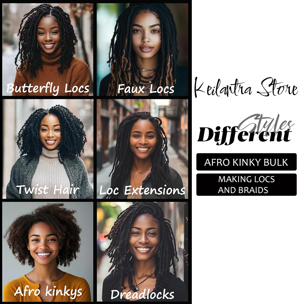 Afro Kinkys Bulk Human Hair for Dreadlock Extensions Loc Repair Braiding Twist Tight Afro Kinky Human Hair for Loc 1Packs 50/30g