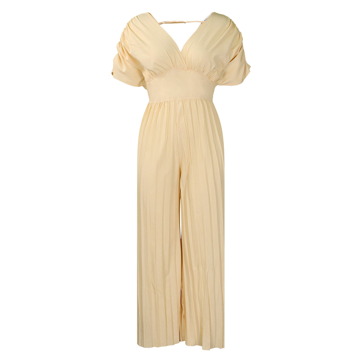 Women's V-neck Solid Color Pleated Jumpsuit - Apricot / L